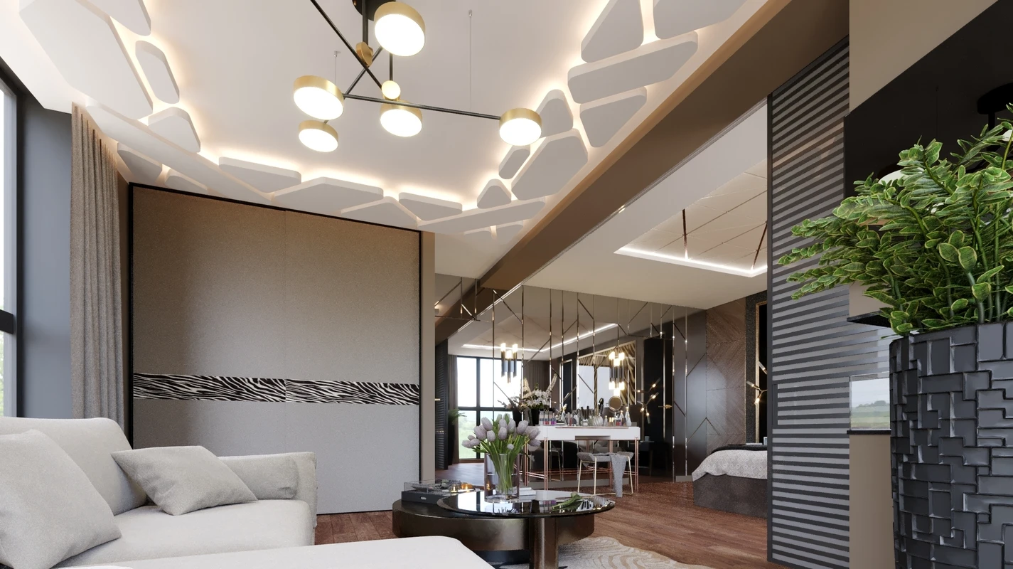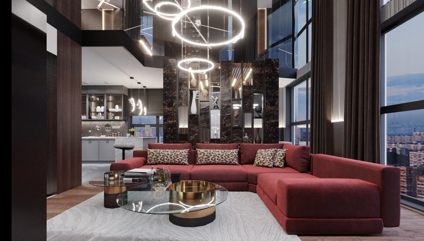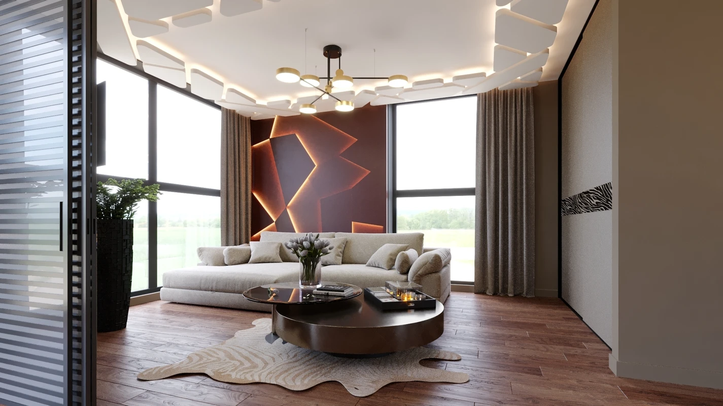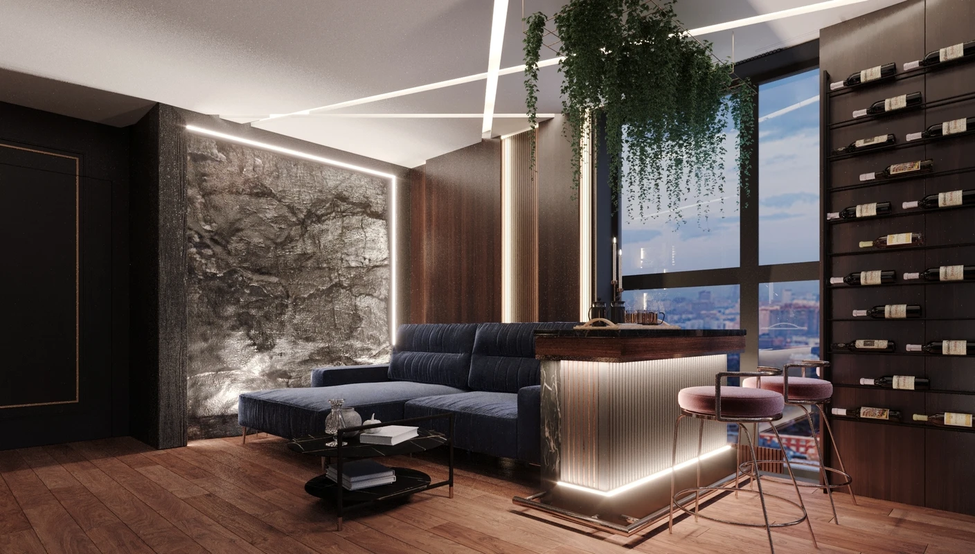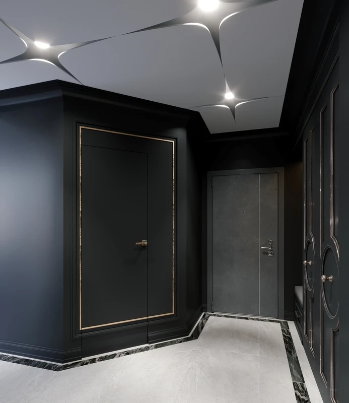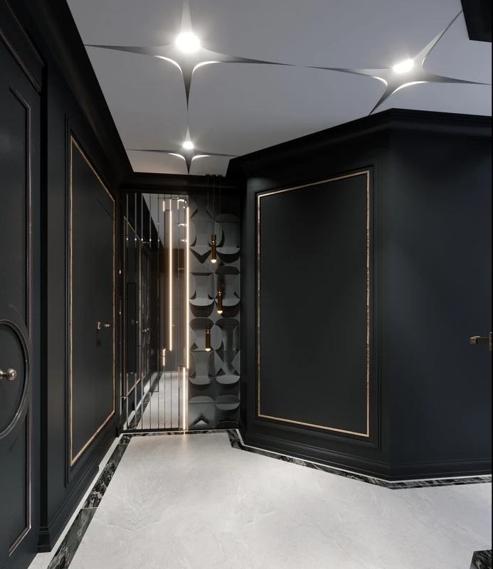 Цей дизайн інтер’єру ми розробили спеціально під замовника, врахувавши всі його побажання, стиль життя та індивідуальні звички. Наша мета – створити простір, у якому буде справді комфортно жити саме цій людині, цій сім’ї. У цьому випадку – це була двоповерхова квартира в Києві з акцентом на складну стелю та оздоблення преміум рівня, як того бажав замовник.