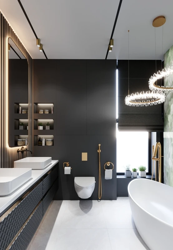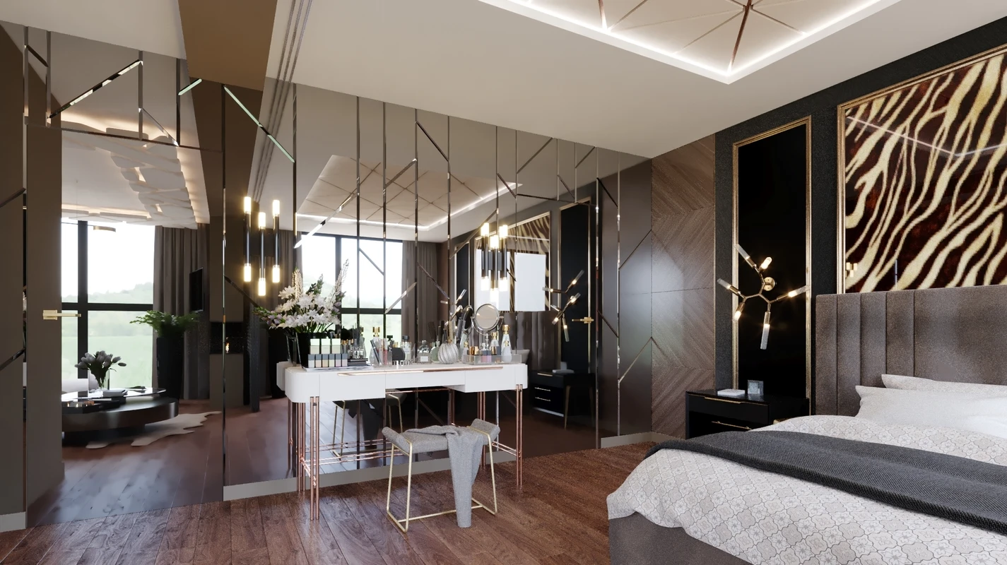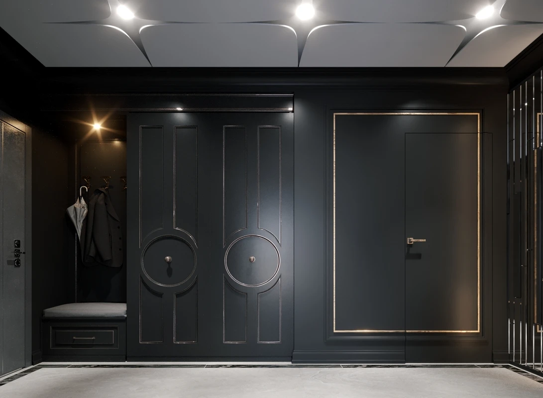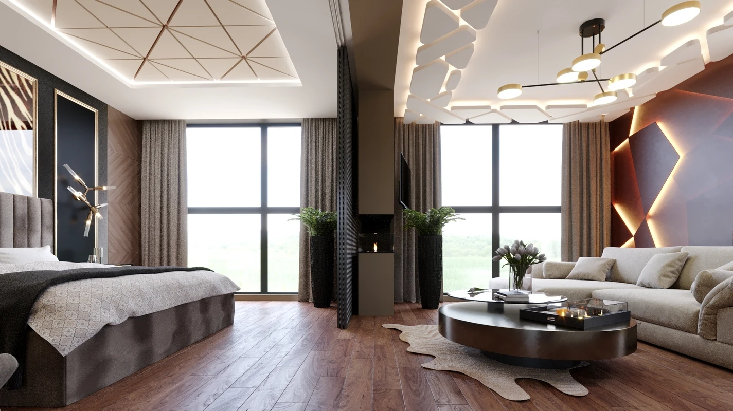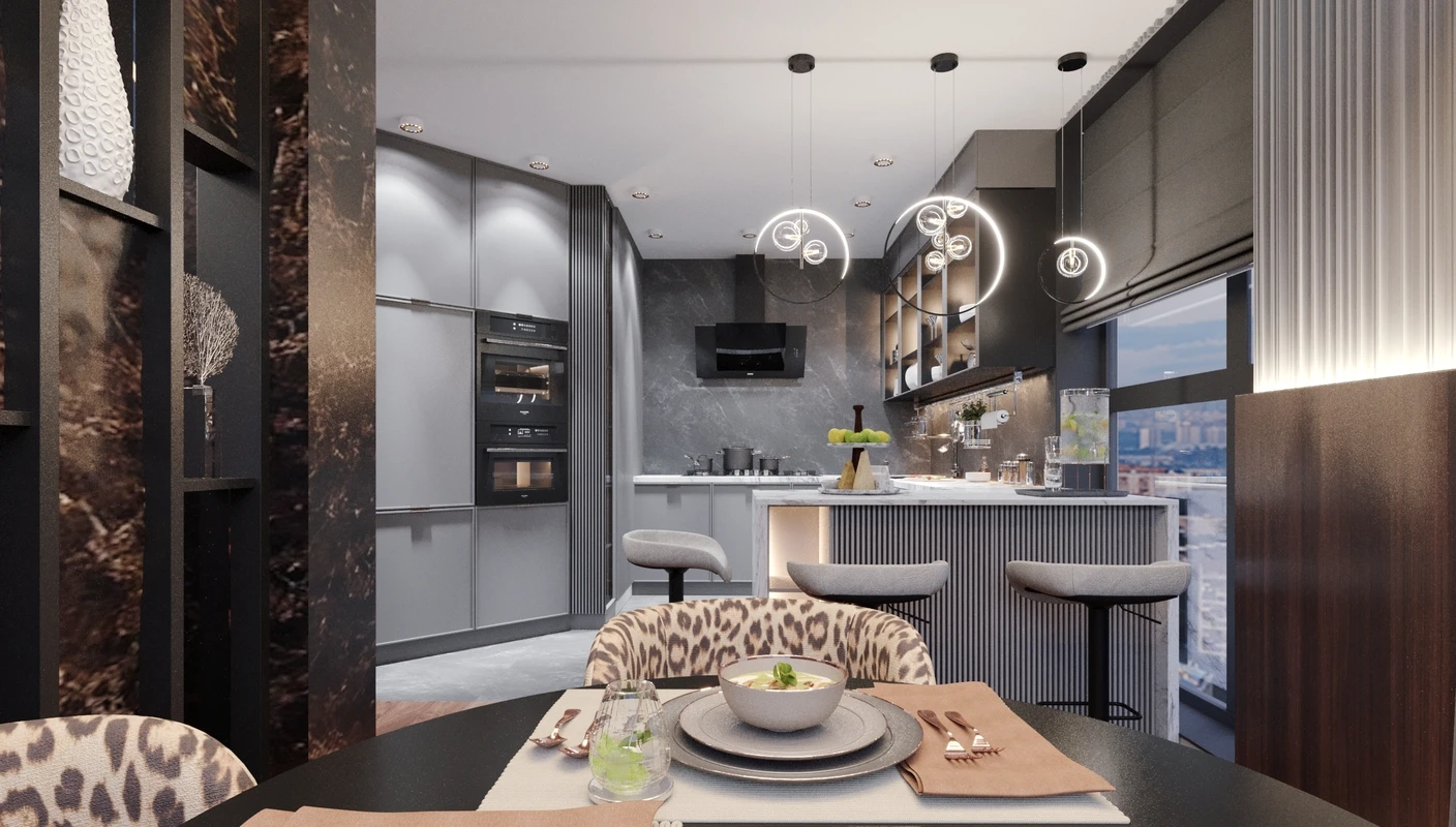 Цей дизайн інтер’єру ми розробили спеціально під замовника, врахувавши всі його побажання, стиль життя та індивідуальні звички. Наша мета – створити простір, у якому буде справді комфортно жити саме цій людині, цій сім’ї. У цьому випадку – це була двоповерхова квартира в Києві з акцентом на складну стелю та оздоблення преміум рівня, як того бажав замовник.